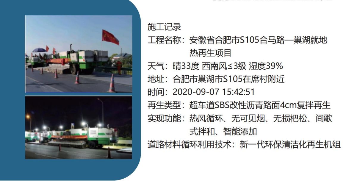 就地?zé)嵩偕鷮崿F(xiàn)功能:熱風(fēng)循環(huán)、無可見煙、無損杷松、間歌式拌和、智能添加道路材料循環(huán)利用技術(shù):新一代環(huán)保清潔化再生機組就地?zé)嵩偕?HIR)是通過現(xiàn)場加熱、松、拌和、攤鋪、碾壓等工序,一次性實現(xiàn)舊瀝青路面材料的100%就地再生利用的路面再生技術(shù),施工過程中具有無須銳刨、收集和運輸舊路面瀝青混合料等優(yōu)點。此外,就地?zé)嵩偕┕に俣瓤?,效率高,通常采用單車道施工,對道路運營影響程度低。